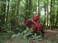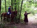 L’utilisation du cheval ne se limite pas à la guerre. C’est aussi un moyen de déplacement. La moindre occasion qui nous est donnée de pratiquer, avec ou sans armure, est donc pour nous l’occasion d’un bon moment. Cela permet en outre de vérifier son aisance dans son costume, et le bon fonctionnement du matériel.
