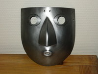 La finalisation de la forme du casque s’est faite grâce aux conseils de Nieczar, l’artisan qui a forgé cet ensemble, mon premier choix étant plus simple et surement moins en adéquation avec le défi du façonnage du masque. Les deux objets devaient présenter les mêmes difficultés pour une proposition cohérente.