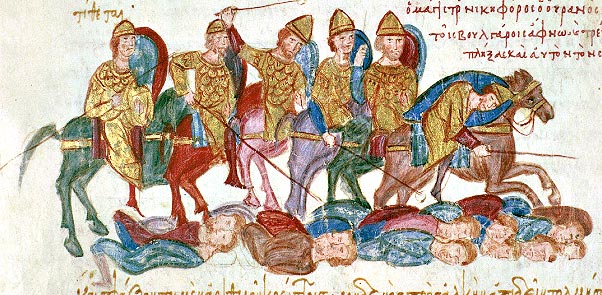 Les romains d’Orient ont une propension non négligeable à intégrer des éléments des peuples qu’ils dominent ou qu’ils combattent. Le roukhon (tunique) ou le kavadion (gambison) sont des adaptations de vêtements perses, le paramêrion (sabre) une conversion probablement d’origine avar.