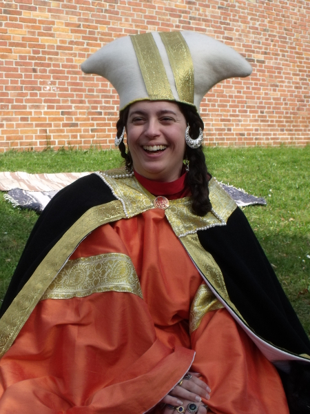 Avertissement : un certain nombre d’éléments présentés dans cet article ne sauraient être considérés comme historiquement correct. Le but de cet article est de proposer une évocation aussi sourcée que possible des differents attributs d’une dame de cours et dans ce but nous nous sommes permis quelques libertés concernant ses bijoux. Nous désirons etre clair sur ce point, aucun des bijoux portés sur ces images (pendants, boucles d’oreille) n’est une réplique d’un modèle existant. Notre travail est évolutif et la fabrication de bijoux plus conforme à la réalité historique (archéologique ou picturale) est en cours. Les photos existantes seront remplacés dés que possible.