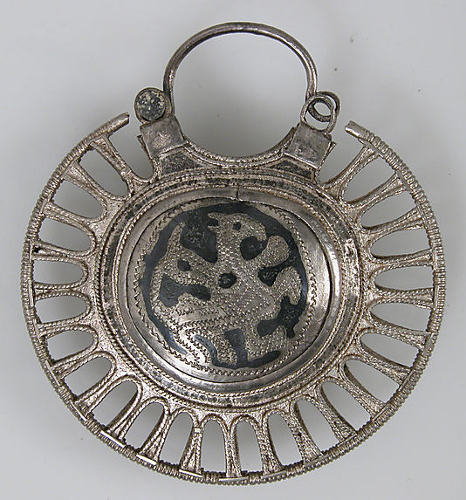 ![]() Figure 7 Kolty 466 x 500 px 262.8 ko Pendant de tempe, kolty, rus. Argent niellé XI-XIIème siècle. Metropolitan Museum of Art 17.190.708. |