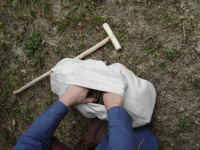 Le sac : En simple lin, sa forme est banale et permet de transporter de quoi se sustenter (vaisselle et victuailles).