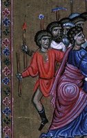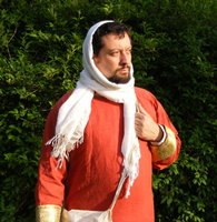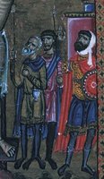 Commun à différentes cultures présentes en Terre Sainte au XIIe siècle, le port du turban n’est pourtant pas représenté dans l’ iconographie des États latins. Celle-ci montre en revanche un foulard long, enserrant le cou et pouvant être utilisé comme couvre-chef. Si la représentation de Longinus (figures 1-2) portant un foulard est peut-être symbolique pour les chrétiens d’Orient (le foulard se retrouve dans des représentations plus tardives du centurion figure 2), d’autres représentations soutiennent l’hypothèse de l’existence de ce foulard comme accessoire vestimentaire (figures 3-4, références 1-2).