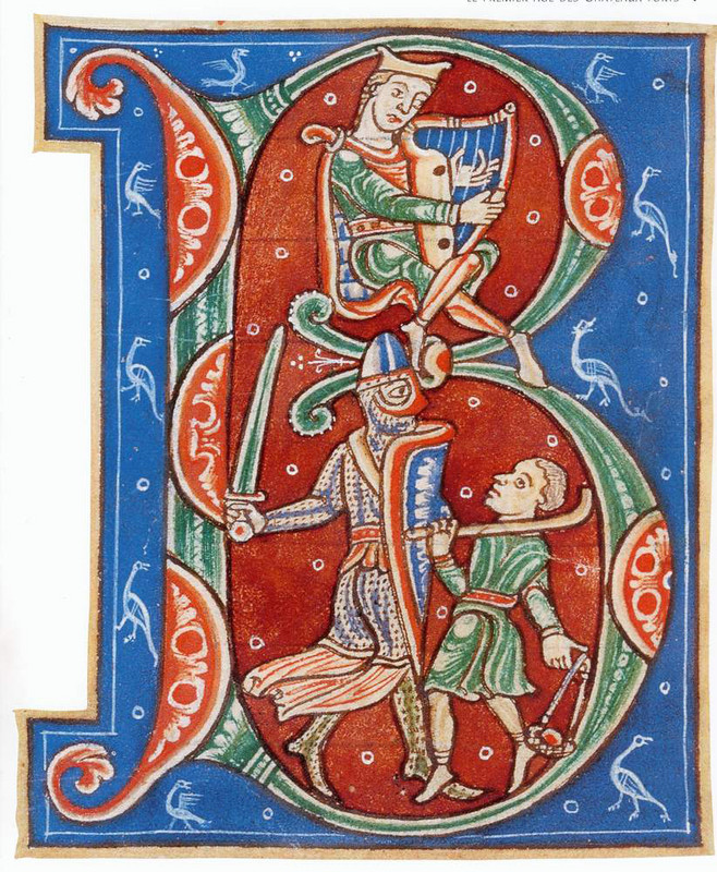 Goliath" Manuscrit N°1, Fonds anciens, Bib. Municipale de Bourg en Bresse, France, v. 1185.