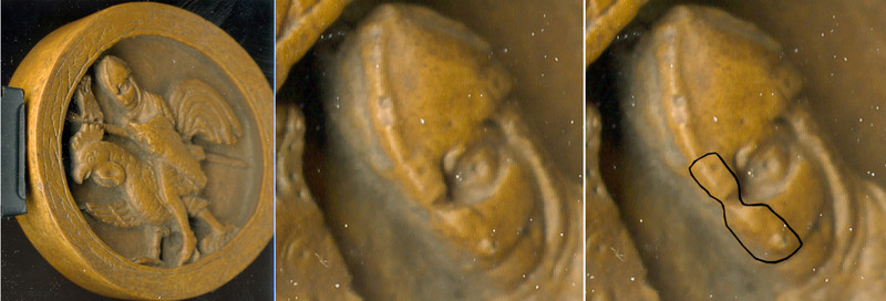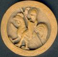 Chevalier chevauchant un coq", pion de tric trac, fin XIIe siècle, Louvres, France