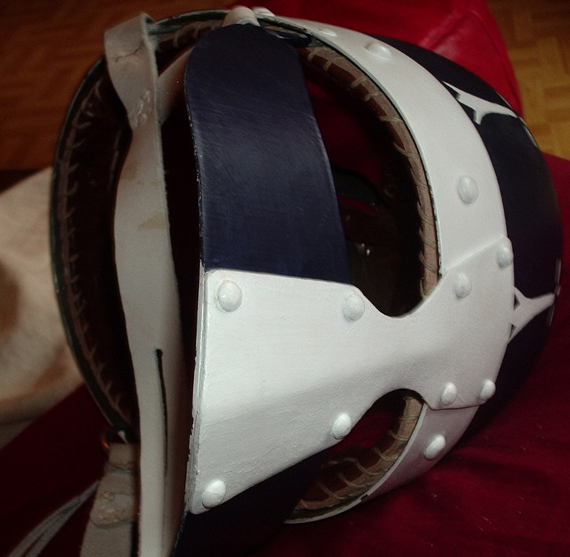 Autour de 1180 apparaît une nouvelle forme de nasal, que nous qualifions de "nasal masque" ou "joière" pour reprendre le terme usité à cette date. Il s’agit d’un nasal élargi, destiné à protéger les joues. Cette innovation est déjà visible vers 1170 sur un heaume à timbre en "bombe" où l’on observe un étirement du nasal lui-même sur les joues, formant ainsi un T parfais inversé (Rolandslied des Pfaffen Konrad, 1170, Heidelberg Ms cod. pal. Germ. Ms 112, F°47r). Cette timide innovation est suivie dans les années 1180 - 1190 par le rivetage d’une plaque indépendante formant ainsi un T inversé plus couvrant (bouche, menton, joues) ("Chevalier chevauchant un coq", pion de tric trac, fin XIIe siècle, Louvres, France).