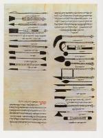 Ozanne dispose d’une série d’instruments de chirurgie qui sont dans la lignée de ceux utilisés par les chirurgiens arabes et tout particulièrement Abulqacim Khalf Ibn Abbès Az-zahraoui, dit Abulcasis. Ce chirurgien cordouan aurait vécu entre 945/947 et 1019/1021 après J-C. Il a laissé en héritage à ses enfants un ensemble d’ouvrages consacrés à la médecine, à l’hygiène, à la beauté, ou encore à la chirurgie, connu sous le nom de « Tasrif li man ajaza ân attaalif » ou « Analyse et exégèse mises à la portée de celui qui ne peut créer et rédiger » (Figure 1). Le volume XXX consacré à la chirurgie présente de très nombreux dessins d’outils dont l’usage est expliqué. Ces dessins ont servi de source au travail de reproduction réalisé par Gaël Fabre.