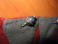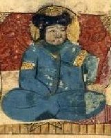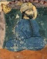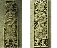 Il est composé de de laine bicolore sur le devant et doublé de soie dorée, avec des boutons argentés. Un vêtement bicolore en laine est assez spécifique et mon opinion se base sur divers exemples d’orfévrerie seldjoukide et, plus largement, d’art musulman où l’on peut parfois voir que la partie centrale du vêtement est plus ornée que les manches. La meilleure illustration de ceci réside dans un fragment de coffret mamelouk du British Museum (image 1).