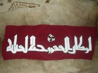 Les bandes à tiraz constituaient un type très fréquent de décor, ici à base de laine brodée, avec une écriture de style coufique. Elle propose une phrase attribuée à l’Imam Ali "Si la pauvreté avait été un homme, je l’aurais tuée" (image 5).