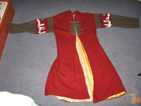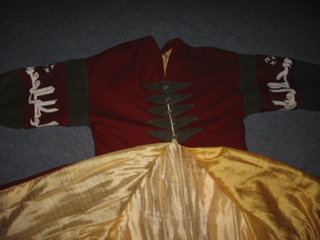 Le vêtement (dont la construction est inspirée par l’ouvrage de Max Tilke) possède des décorations triangulaires sous les boutons influencées par le manuscript d’al Hariri (images 2, 3 et 4).