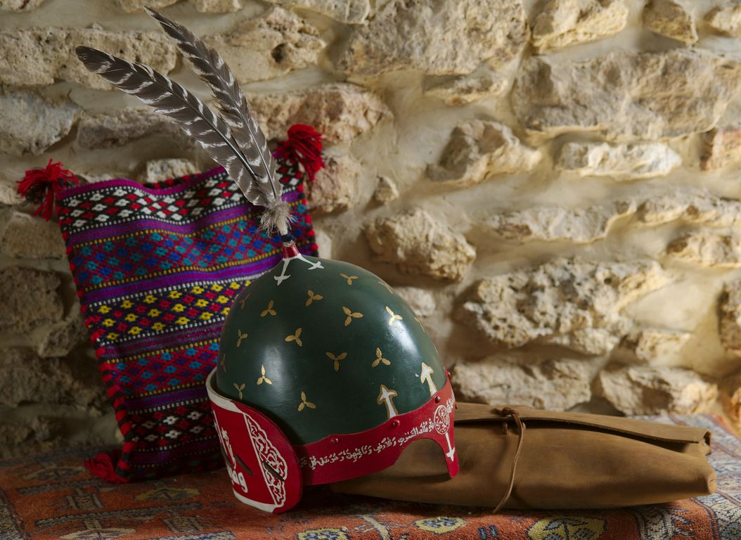 J’ai ensuite réalisé la décoration du casque en le peignant. J’ai opté pour trois couleurs très représentées et fortement symbolique de la culture islamique médiévale, a savoir le rouge, le blanc et le vert.