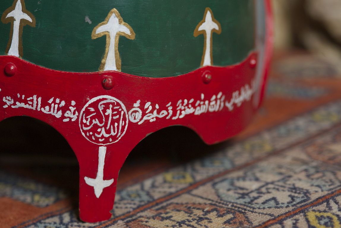 ![]() détail du bandeau frontal 1148 x 768 px 132 ko Sur le bandeau : Coran verset [5:99] « Saches qu’ Allah est sévère dans sa punition et qu’Allah est aussi le plein de pardon et de pitié ». |