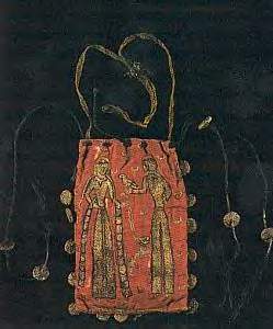 Note importante : je n’ai pas de source attestant l’usage de ce type de "bourse" pour l’aumone. Il s’agit d’un simple postulat formel où j’ai décidé de valider l’hypothese que ces objets au nom consacré etaient destiné à cette usage.