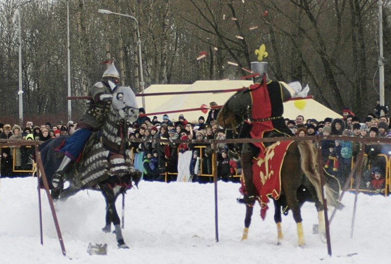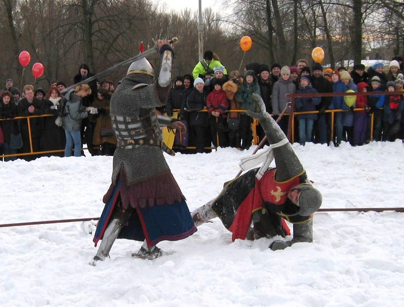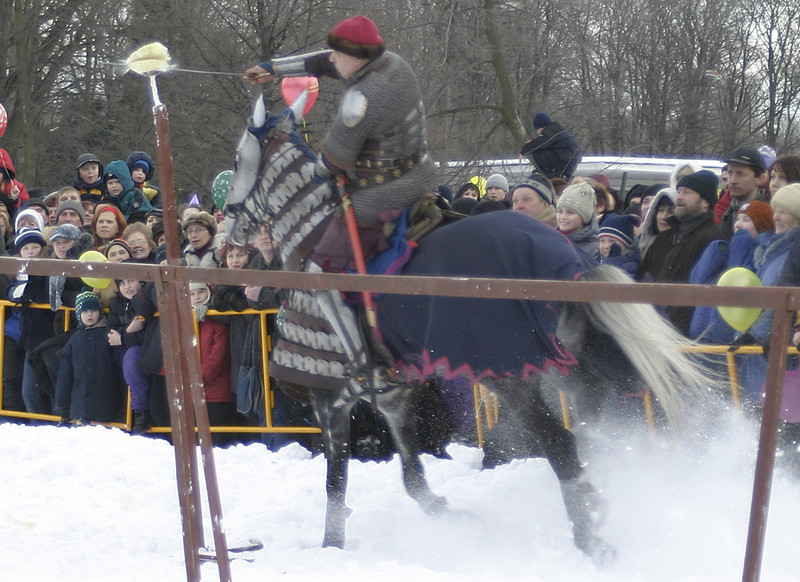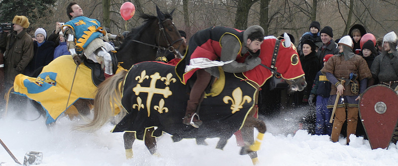 ![]() Tournoi du 22 mai 2004 578 x 818 px 88.9 ko Freinage en fin de lice lors des jeux préliminaires à la joute, Piotr Vasin en selle. |
