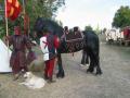La selle, d’une forme moderne pour l’époque, est un prototype en lamellé collé basé sur plusieurs sources iconographiques. Les patin sont en bois de forme moderne (du type Mac Lellan) afin de voir comment fonctionne le cheval avec un minimum de risque. J’espère pouvoir faire le même modèle avec des patins droits, le tout en bois massif. A suivre.