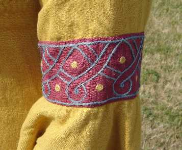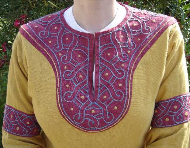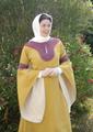 La robe est ajustée au buste par un laçage dans le dos, comme il est évoqué dans les "Lais de Marie de France", dans le Lais de Guigemar.