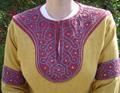 Les manches sont évasées, mais restent pratiques. Elles sont doublées de soie sauvage écrue.