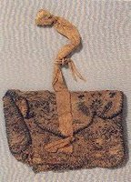 Ce qui est particulièrement intéressant dans ce sac, c’est que nous pouvons en retrouver des exemples similaires dans un manuscript nord Irakien de 1199 présentant des danseuses (fig. 2 & 3) ou un objet proche (dans sa construction) : une bourse de Chine (fig. 1), de la dynastie Liao (Xe-XIIe). Ce dernier fait 9cm de haut et 13,7 de large. Il semble donc que ce type de sac était utilisé à la fois apr les hommes et les femmes et était très répandu au point de vue géographique.