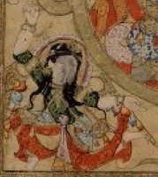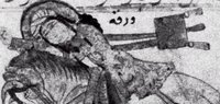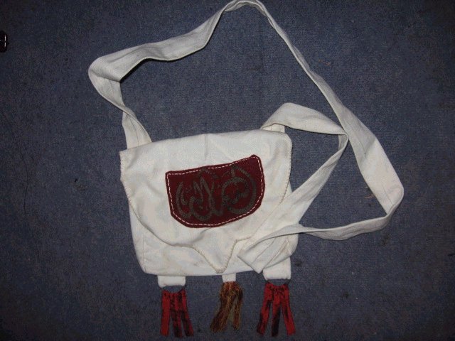 Mon sac en coton (fig. 5) se base entièrement sur les illustrations du manuscrit Warqa wa Gulshah de la fin XIIe-début XIIIe ou nous pouvons voir le cavalier avec le sac en bandoulière (fig. 4). La broderie décorative avec des inscriptions arabes est : "Allah Akbar".