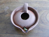 La technique utilisée pour leur fabrication consiste en un assemblage d’une coupe, tournée, sur lequel se rajoute le réservoir, lui aussi tourné [1]. La coupelle est pincée permettant ainsi de faire reposer la mèche, qui pénètre dans le réservoir par un trou placé dans l’axe (figures 6-7,11). Une anse vient parfaire l’ensemble. Les lampes ainsi fabriquées restent de petite taille (en moyenne 100x100 mm). Une cuisson à très haute température permet de rendre les lampes imperméable au combustible ce qui explique sans doute que les lampes trouvées en Palestine soient généralement non-glaçurées [2].