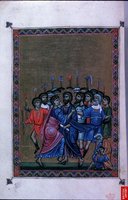 Les torches, fabriquées en général à base de résine, sont rarement utilisées en intérieur, pour d’évidentes raisons d’enfumage et de risque d’incendie. Elles restent néanmoins un éclairage de choix en extérieur et sont présentes en tant que tel dans l’iconographie relative au Royaume de Jérusalem (figure 1). Les bougies de cire sont généralement réservées au clergé ainsi qu’aux classes supérieures, mais restent un produit de luxe du moins jusqu’au XIIIeme siècle oÙ commence leur production de masse. D’autres bougies, à base de graisse ou de suif, existent pour les classes moins favorisées. Pour ce qui est de l’éclairage dans la sphère privée dans le bassin méditerranéen, seule les lampes à huiles sont généralement, et ce depuis l’Antiquité, utilisées.